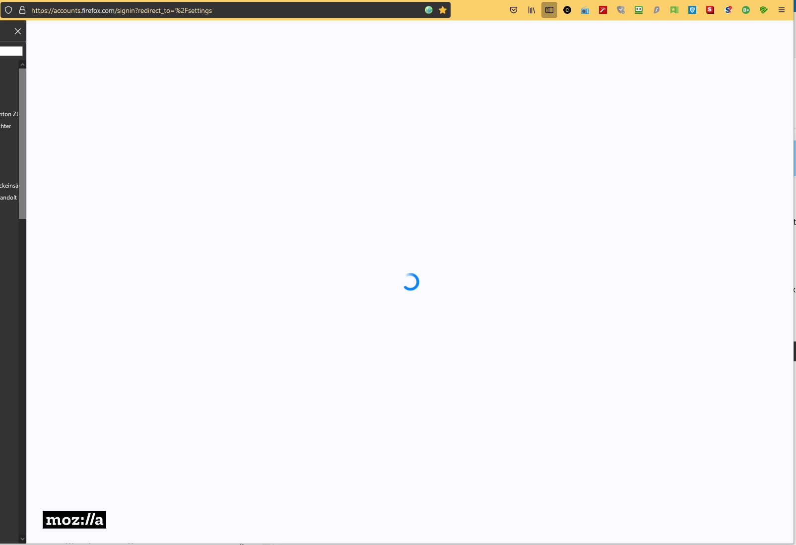 Aber jedesmal, nach einer Neuistallation mit neuem Passwort, kann ich mich nur das erste mal im Synchronisations Konto anmelden und die Geräte verknüpfen. Wenn ich mich dann aber von Firefox abmelde und später wieder anmelde, um ein weiters Gerät hinzu zu fügen, bleibt die Anmeldung hängen und ich sehe nur den fogenden Bildschirm!![]()