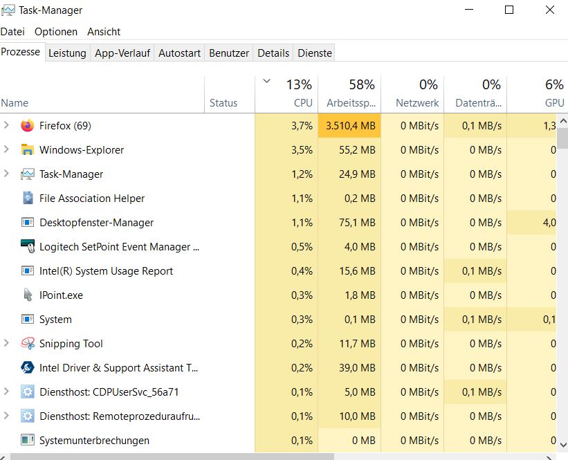 Vielleicht könnt ihr mir noch sagen, wie ich herausfinde welcher Tab eine CPU Auslastung von 30% fordert? Im Taskmanager sehe ich den Tag nicht.