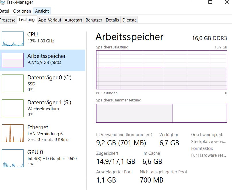Ich habe im Taskmanager gesehen, das Ein Teil des Ramspeicher komprimiert ist.