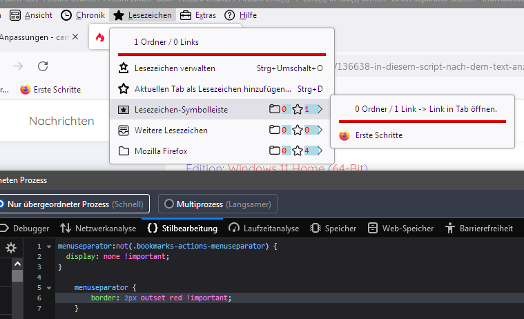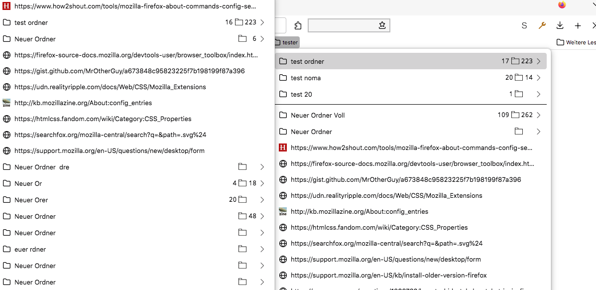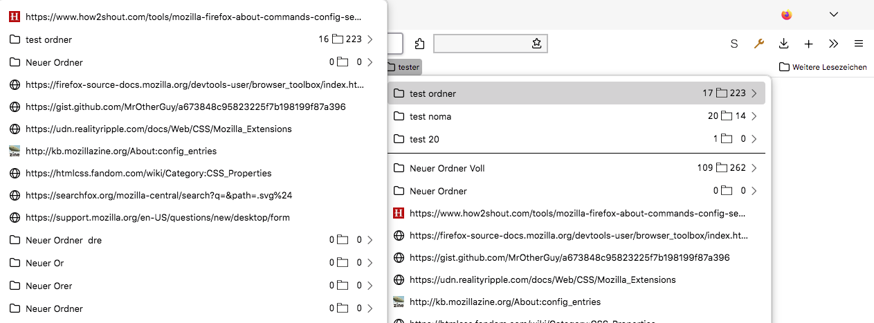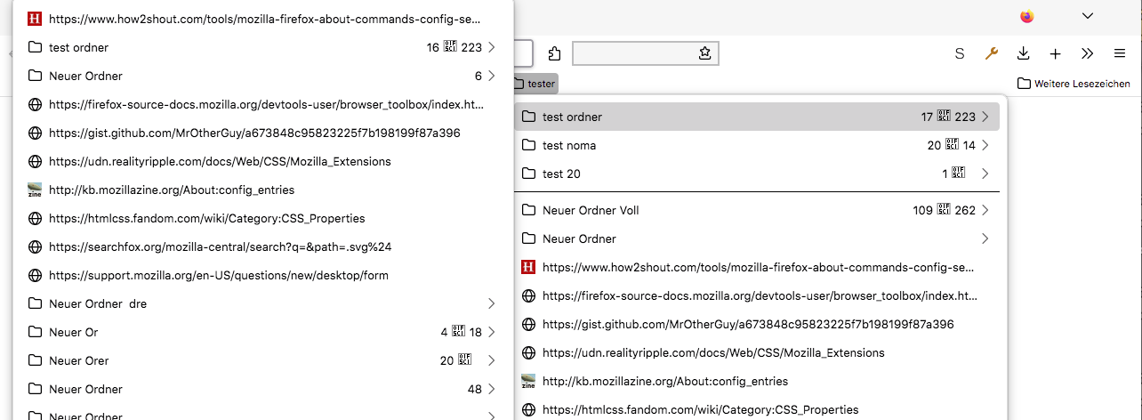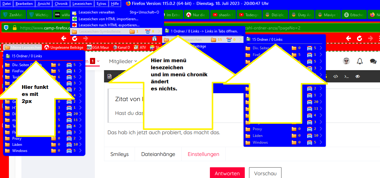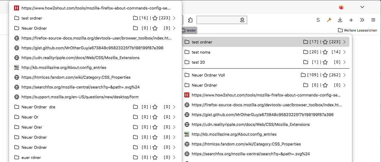 Menü Chronik. Gut. ------------------ Menü Lesezeichen. Gut. ----------------- Lesezeichen-Symbolleiste. Nicht gut.