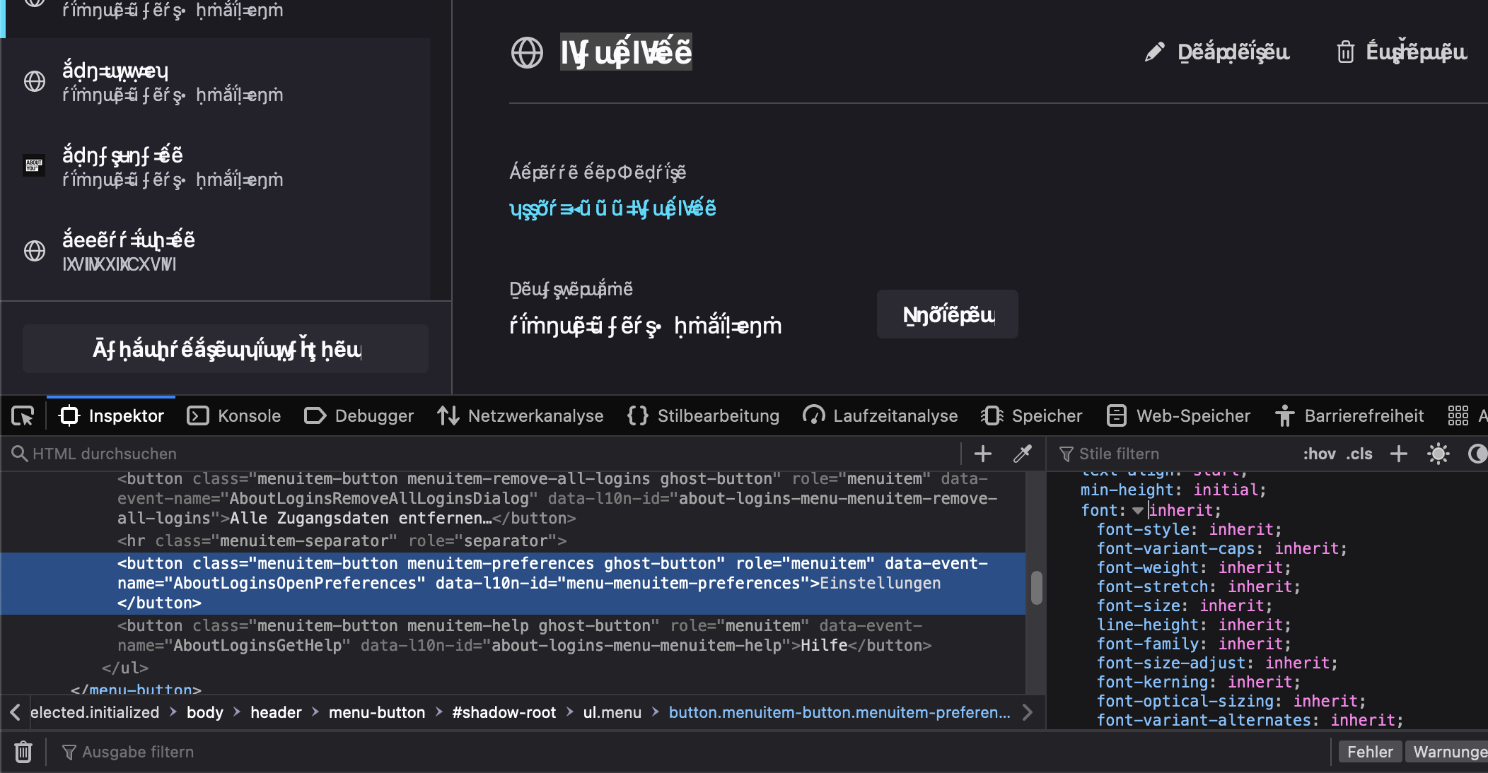 Habe sämtliche SF-Schriften in der Schriftsammlung entfernt, Firefox neu gestartet und es hat sich nichts geändert, immer noch diakritische Zeichen auf der Startseite und in den Passwörtern.