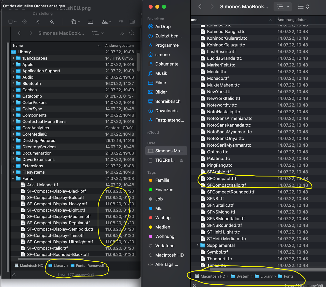 Wie bekomme ich denn die Schriften wieder zurück? Aus dem anderen font-Ordner?