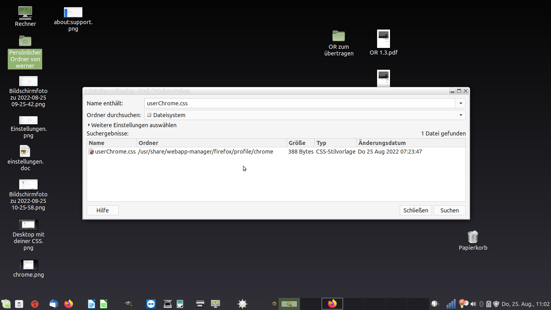 Der Ordner "Chrome" ist in den Profilordner gemäss "about:support" kopiert.