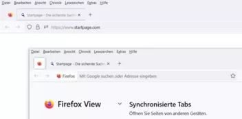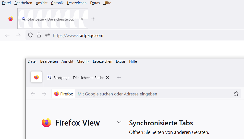 Weil nun das interne Display den Browser mit größerer Schriftgröße darstellt, fällt die Tabhöhe besonders auf und der Klick auf Firefox View erinnert an die "normale" Tabhöhe.
