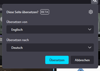 Seit kurzem taucht bei fremdsprachigen Seite ein Pop-up (Beta) auf für eine Übersetzung, wo man nur die Sprache einstellen kann oder für diese Seite nicht. In den FF Settings selbst dann finde ich keine Option, um das komplett zu deaktivieren oder habe es nicht gefunden. Daher, wie schalte ich das aus?