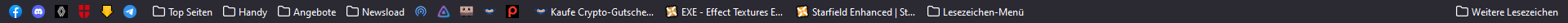 Wie Lesezeichen nach rechts ziehen? Das geht ja nicht. Ich habe das Lesezeichen-Menü über kopieren und in die Lesezeichen Leiste einfügen erstellt und dann war es eben direkt neben denn anderen. Nach rechts verschieben geht so nicht. In der Symbolleiste gibt es auch dieses Lesezeichen-Menü was dann rechts platziert wird. Denn CSS Code habe ich mal erstellt und sieht nun aus wie bei 2002Andreas. Danke.