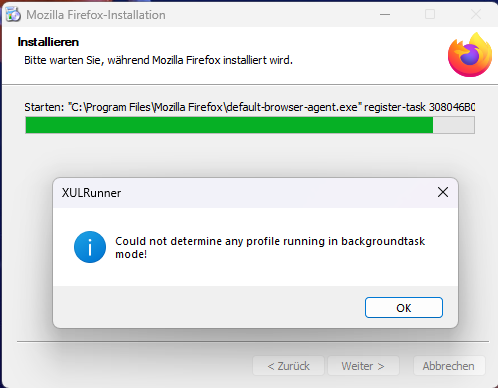 Habe mir die aktuelle Firefox 122.0.1 geladen und wollte diese über die 122 installieren, wobei ich relativ am Schluss vom Setup diesen XUL Error bekomme. Diese Meldung sehe ich zum ersten mal und sagt mir rein gar nichts. Scripte nutze ich aber da ich diese schon länger nutze und vorher nie diese Meldung sah, denke ich das es daran nicht liegen kann.