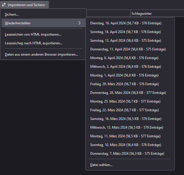 Seit ich denn FF 125.0.1 verwende funktioniert das Bookmark Backup/Restore Script (siehe Anhang) nicht mehr. Was muss hier ändern das es wieder ab Version 15 läuft?