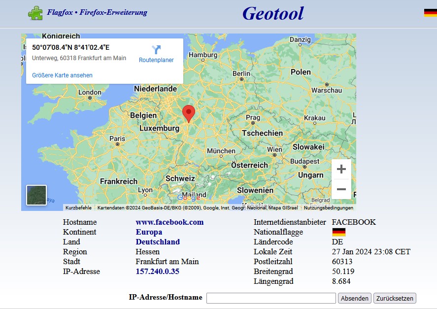 Teilweise ist es so, dass mir die "uns" bekannte Seite angezeigt wird (Bild).