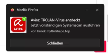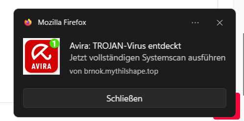seit 2Tagen habe ich im Mozilla immer wieder popup-Virenwarnungen von brnok.mythilshape.top. Was tun?