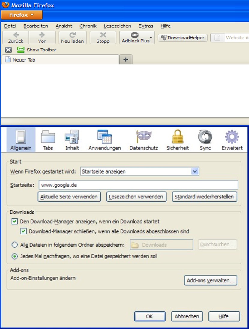 Ich brauche Google nicht immer, wenn ich meine Tabs öffne. Mir reicht es, wenn ich Google einmal offen habe.