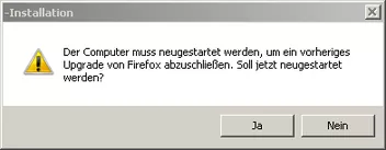 Der Computer muß neu gestartet werden, um ein vorheriges Upgrade von Firefox abzuschließen. Soll jetzt neu gestartet werden? - JA - NEIN