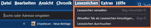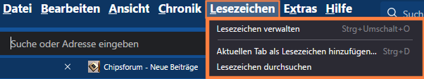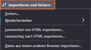Ich habe eine weitere Stelle gefunden, wo sich für mich der Workflow womöglich optimieren ließe. Es betrifft das Lesezeichenmenü in der Menüleiste. Will ich Lesezeichen sichern oder importieren, muss ich bislang "Lesezeichen verwalten" aufrufen und im neuen Fenster "Importieren & Sichern" anklicken. Lässt sich "Importieren & Sichern" bereits einen Schritt früher im Dropdownmenü in das Feld mit "Lesezeichen durchsuchen" implementieren? 🙂