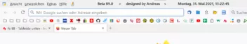Ich habe mir zu Testzwecken schon mal den Firefox 89 heruntergeladen und mit meinem Profil (Back-Up von vor Installation liegt vor) ausprobiert. Dabei erscheint das Phänomen, dass die Tabs direkt über der Taskleiste angezeigt werden und auch nur der aktive ganz rechts. Die Tableiste besteht weiterhin oben unter der Adressleiste. Die Ansicht bleibt bei ein- wie ausgeschaltetem Proton gleich. Kann mir jemand helfen, die Tabs wieder in die Leiste zu hieven? ![]()