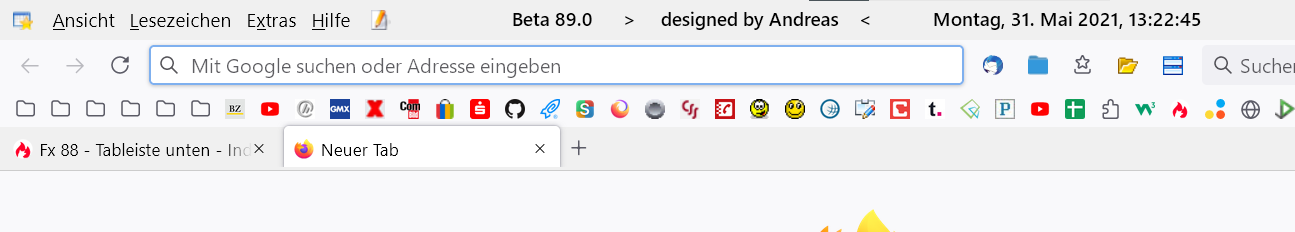 Gibt es einen alternativen CSS-Code, bei dem sich die Tableiste wieder unter der Adressleiste befindet, ohne dass die Tabs auf die Taskleiste fallen. Dieser hier ist ziemlich alt, denke ich, hat aber bis einschließlich FF 88.0.1 funktioniert.
