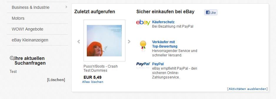 Danke für den Hinweis. Bin genau so vorgegangen - und alles ist gelöscht (auch die Suchanfrage). Normalerweise lösche ich die Cookies mit dem CCleaner, aber der erwischt wohl nicht alles (ist erst seit kurzer Zeit so). Irgendwo im System muss es noch einen alten oder versteckten Speicherort für eBay-Daten geben. Der ist nun bereinigt - und alles ist gut. Werde das mal noch weiter beobachten; aber für heute hast Du mir auf jeden Fall geholfen. Vielen Dank für Deine Mühe!