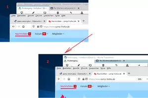 Zurück zum Thema des Eröffnungsbeitrags. Für mich sieht es danach aus, dass das Thunderbird-Profil auf irgendeine Art und Weise die zeitweilige Abrundungen des Firefox-Fensters verursacht. Die zwei Screenshots unten zeigen