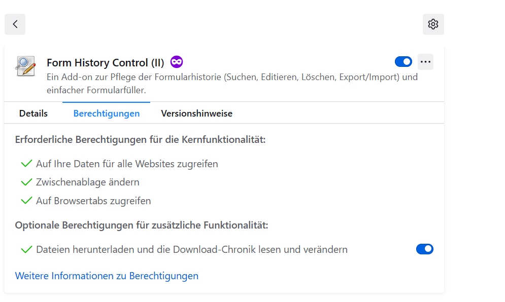 Ach ja, uBlock Origin wurde per Standard installiert.
