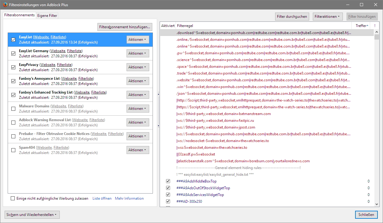 Edit: Wenn ich in EasyList auf die Webseite und die Filterliste gehe, dann sieht das so aus: