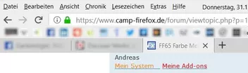 Beziehungsweise, um nur das Problem der Leiste zu lösen, gleich hier: https://www.camp-firefox.de/forum/viewtopic.php?f=16&t=122538