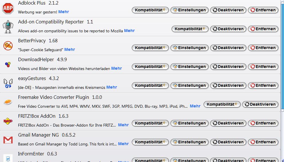 Also mir wurde beim Update von Firefox 5.0 die nicht kompatiblen Erweiterungen angezeigt.