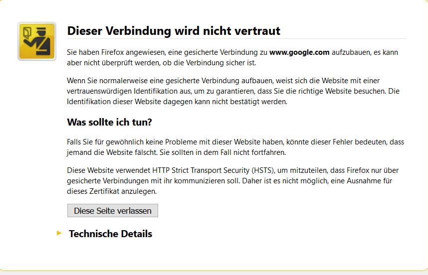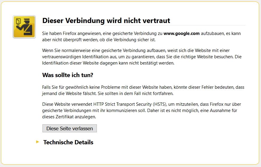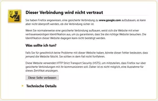 seit Umzug auf einen neuen Rechner läßt sich die Google-Seite nicht mehr aufrufen. Grund sh. screenshot.
