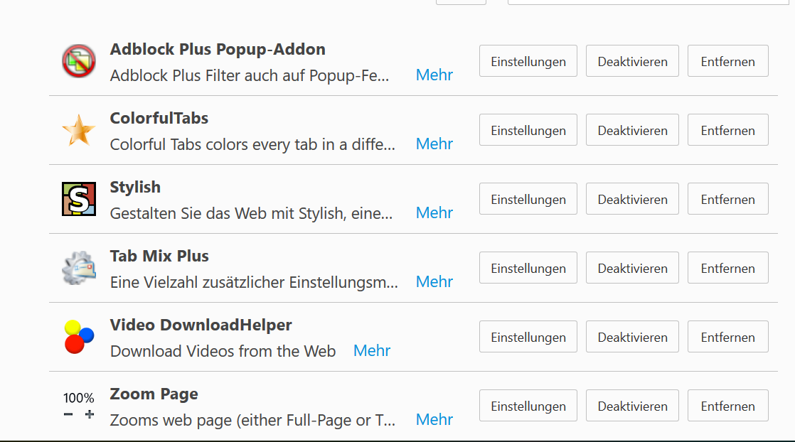 wenn es gewollt ist, daß sämtliche AddOns als "veraltet" bezeichnet werden und nicht mehr funktionieren, dann sehe ich für die Zukunft meines Lieblingsbrowser dunkel bis schwarz. Dabei bin ich bescheiden, was die Anzahl betrifft. Einzelheiten sh. Screenshot.