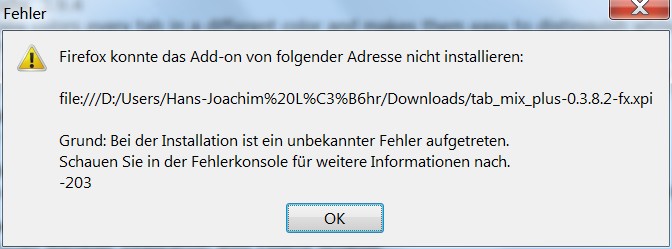 FF 3.5.4 "verweigert" die Annahme einer Reihe von Erweiterungen.Insbesondere benötige ich "Forecast,TabMix u. ColorfulTabs".