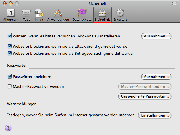 es geht um die klickbox in der abteilung sicherheit und dort um den abschnitt warnmeldungen.