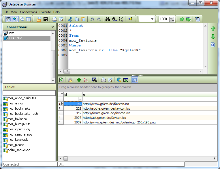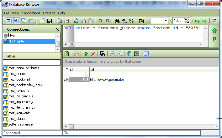 Die favicon_id verweist auf golem.de mit der id 1515