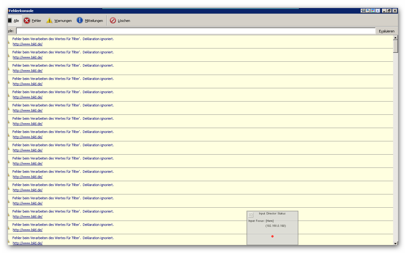 Die Beeinträchtigung ist durch ständiges Öffnen der Fehlerkonsole. Wie kann ich dies verhindern und sie geschlossen halten?