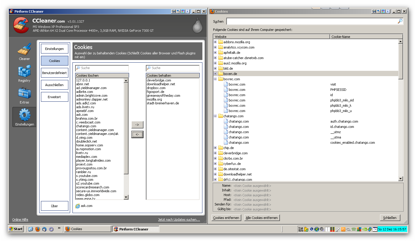 wenn ich die gespeicherten Cookies im Firefox und im CCleaner anzeige sind diese verschieden. Warum?