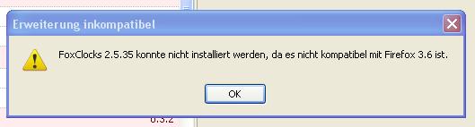 Es geht um die Erweiterung Foxclocks im FF 3.6. Nach den Angaben auf der Seite von Mozilla ist die Version 2.5.35 von Foxclocks kompatibel mit FF 1.5 - 3.6*. Ich habe ein Profil von FF und Foxclocks funktioniert auch wenn ich FF in Sandboxie starte.