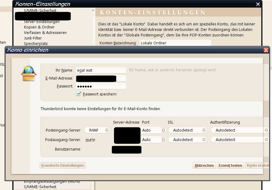 In Thunderbird 6 gibt es einen Fehler im Fenster zum Einrichten eines Kontos. Das Fenster ist zu schmal.