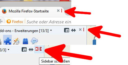 Dies betrifft alle im FF vorkommenden Schließen Buttons. Ausnahme ist lediglich das X zum Schließen des FF selbst.