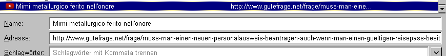 Nach Neuanlage des Lesezeichens funktioniert das in der laufenden Sitzung, nach Neustart ist wieder die falsche Adresse drinnen... wo die herkommt, keine Ahnung. Irgendwo muß diese noch versteckt vorhanden sein...