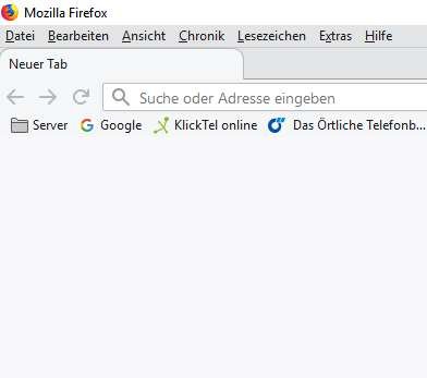 Die beiden Bilder zeigen IST und SOLL. Den Rahmen um die Tabs habe ich zwar wegbekommen, aber dafür ist der aktive Tab jetzt im 3D-Effekt gedrückt. Ich hätte gern die Tabs flach ohne 3D und bei den inaktiven Buttons rechts den Rand. Aber irgendwie klappt es nicht. Das andere Bild zeigt, wie ich es gern hätte mit der Höhe und damit auch dem Abstand zum Menü. So sieht es bei WaterFox standardmäßig aus. Dass man die Tabs im FF sicher nicht so elegant hinbekommt, wie beim WaterFox ist nicht das Problem. Aber Höhe und Ränder sollten doch eigentlich anzupassen gehen. Was mich auch stört, ist die Größe der Adresszeile. Ist sie leer, dann ist das so ein gewaltiger Kasten, wie im Bild. Steht etwas drin, ist sie nicht mehr so hoch. Die Googlesuche brauche ich eigentlich an dieser Stelle nicht. Wenn sie durch einen entsprechenden CSS- oder JS-Eingriff verschwindet, ist das kein Verlust. Ich benutze das Feld nur für Web-Adressen. Suche ich etwas über Google, dann gehe ich auf google.de.