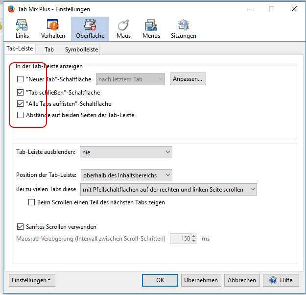 Außerdem würde ich gern die Schaltfläche für neue Tabs eliminieren und den Tabwechsel MouseOver in der Tableiste wäre ich auch gern los. Dort soll nur die linke Maustaste das Umschalten zwischen Tab bewirken. Ich vermute, dass das in einem der Scripte versteckt ist.