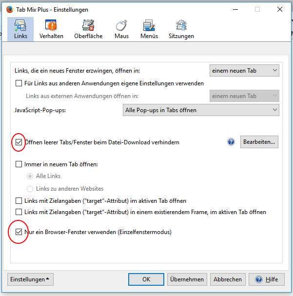 Öffne ich als erstes eine Seite, die nicht aus einer manuelle Eingabe der Adresse stammt, dann bleibt die erste leere Seite so als leere Seite stehen und es wird ein neuer Tab geöffnet. Ich muss dann die leee Seite von Hand schließen. Eigentlich müsste aber die leere Seite überschrieben werden.Zur Zeit habe ich die folgenden Erweiterungen und Scripte am Laufen: