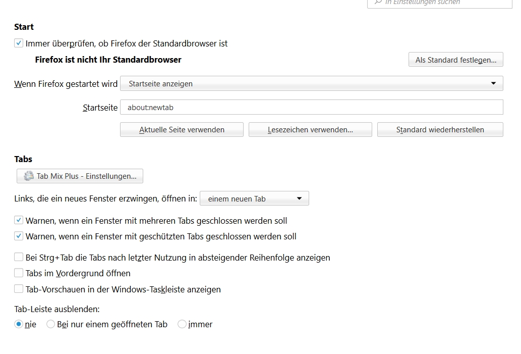 Darum hier nochmals die Frage, die ich schon vorhin gestellt hatte: Gibt es eine Möglichkeit, beim Firefox so was ähnliches