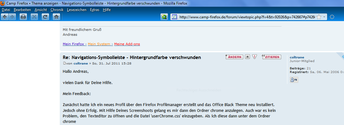 die userChrome.css Datei mit dem Editor einzufügen - mehr noch;
