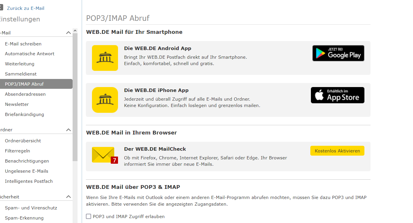 Lies dir mal folgende Seite aus der Web.de-Hilfe durch:
