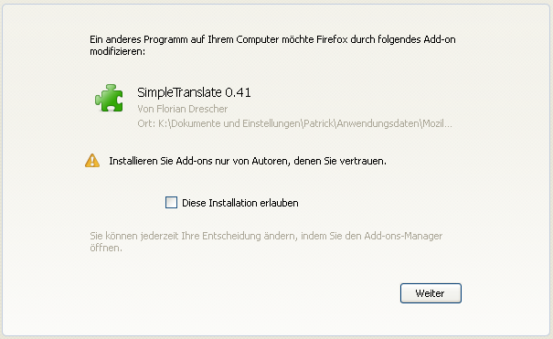Die vorher installierten Add-Ons sind allerdings nach wie vor aktiv. Allerdings sind so keine Updates von Add-Ons mehr möglich. Auch bei den Erscheinungsbildern kommt exakt die selbe Meldung. Die Auflistung der Plugins funktioniert dagegen problemlos. Was ist da los? -