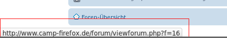 wenn ich mit dem Mauszeiger auf einen Link gehe, wird dieser ja unten links angezeigt. Da diese Anzeige kaum vom Rest einer Webseite zu unterscheiden ist, wenn diese Seite auch schwarzen Text auf weissem Hintergrund bietet, möchte ich gerne einen etwas deutlicheren Rahmen um diese Anzeige ziehen. Kriege es aber nicht richtig hin, mit folgendem Code wird irgendwas grösseres angesprochen, seht selbst im Bild. Der Rahmen ist vorerst zur Verdeutlichung rot gemacht.