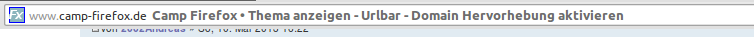 [attachment=0]Unbenannt2.png[/attachment]Die "Domain" wird links in einem grösseren Button angezeigt, der Rest der Url durch den Seitentitel ersetzt. Zusätzlich lasse ich den Seitentitel durch userchrome.css-Codes fett anzeigen und für https grün/rot. Bei Mouseover über der Urlbar wird mir automatisch die Url markiert angezeigt (glaube, das ging mittels userchrome.js-Script).