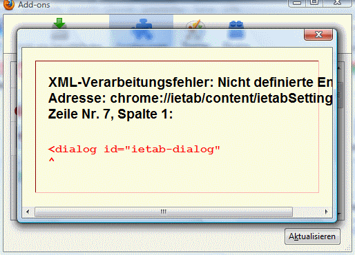 Mal sind sie da wenn ich FF starte und mal nicht.Beim IE Tab z.b. habe ich folgende Fehlermeldung wenn ich zu den Einstellungen will (siehe Bild)