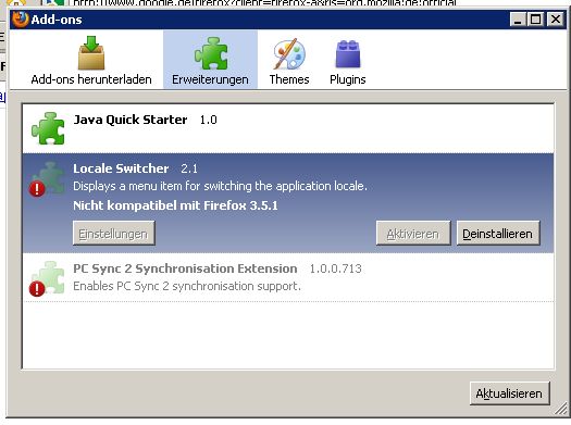 eingebe, erfolgt die Installation ohne Fehlermeldung. Wenn dann den Firefox erneut starte und mir die Add-Ons anschaue, bekomme ich den Hinweis, daß das Add-On nicht kompatibel ist (vgl. Anhang).