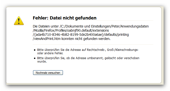 Woran kann das liegen und wie ist der Fehler zu beheben?