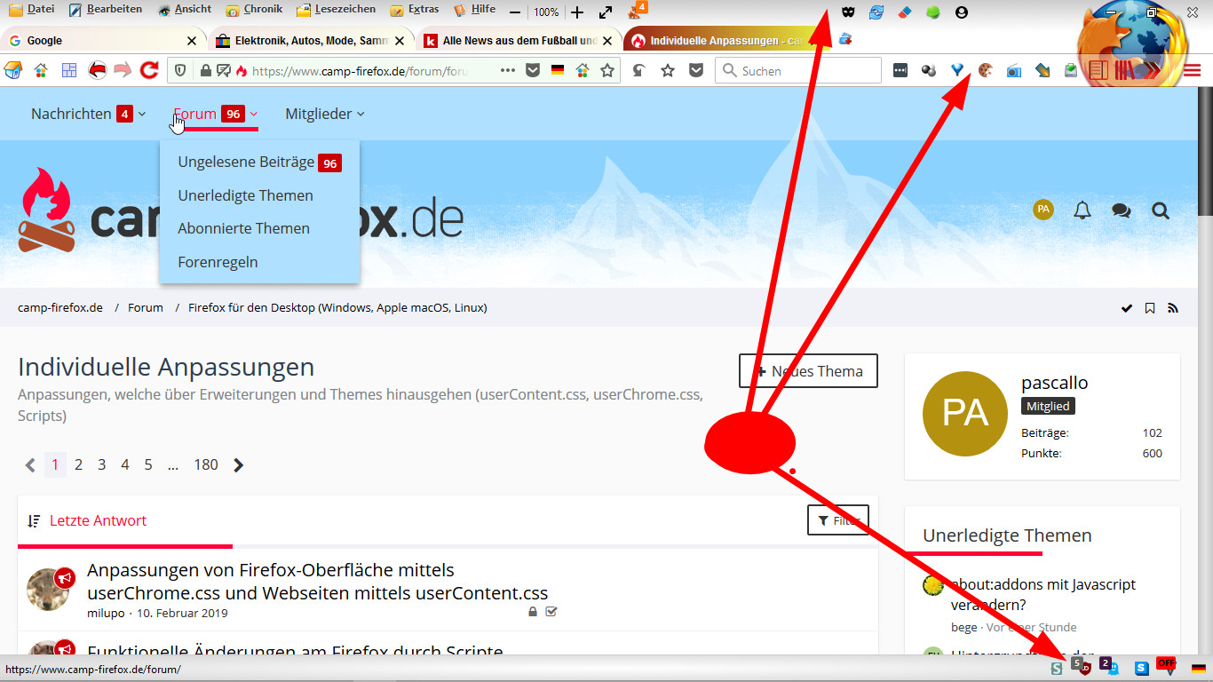 Datei userChrome.js aus der Firefox-Anpassungen.zip hab ich auch im neuen Profil nochmals neu überschrieben. Muss ich da in about:config noch was einstellen, dass ich die Scripte im neuen Profil zum Laufen kriege?![]()