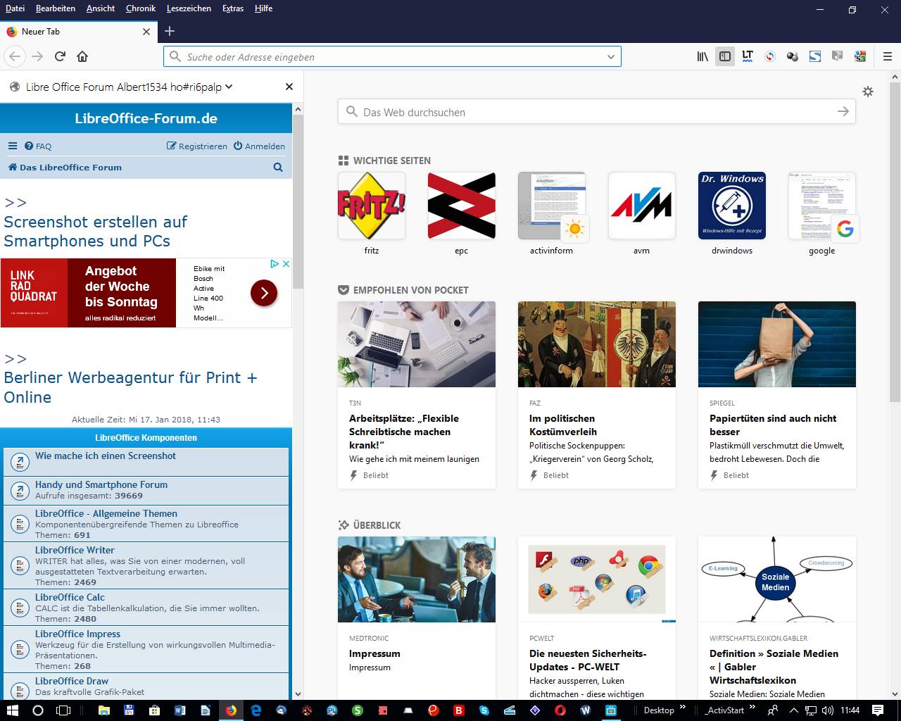 mit unterschiedlichen Startseiten,